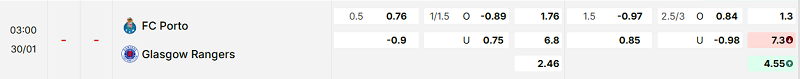 Bảng kèo mới nhất trận FC Porto vs Rangers